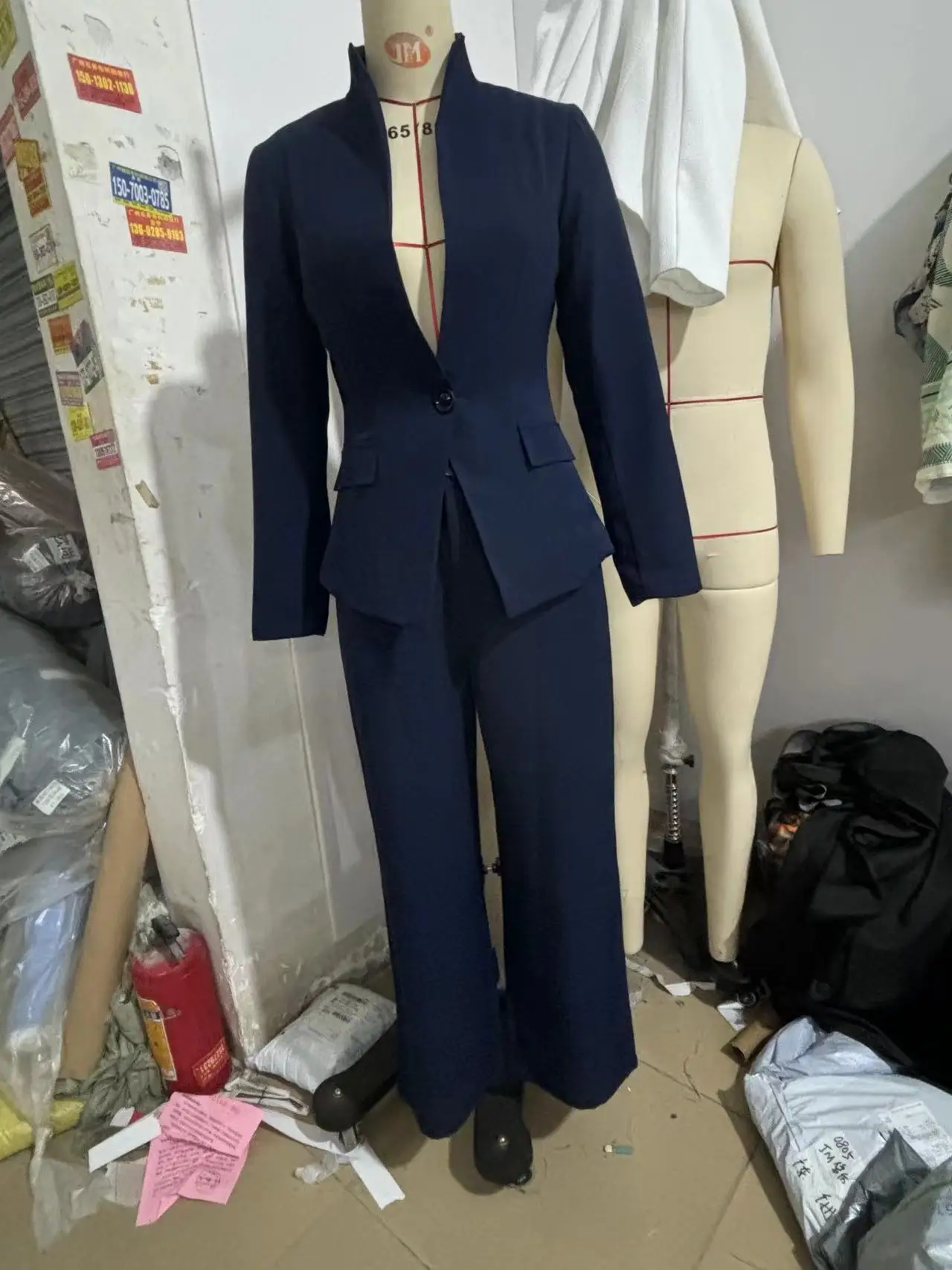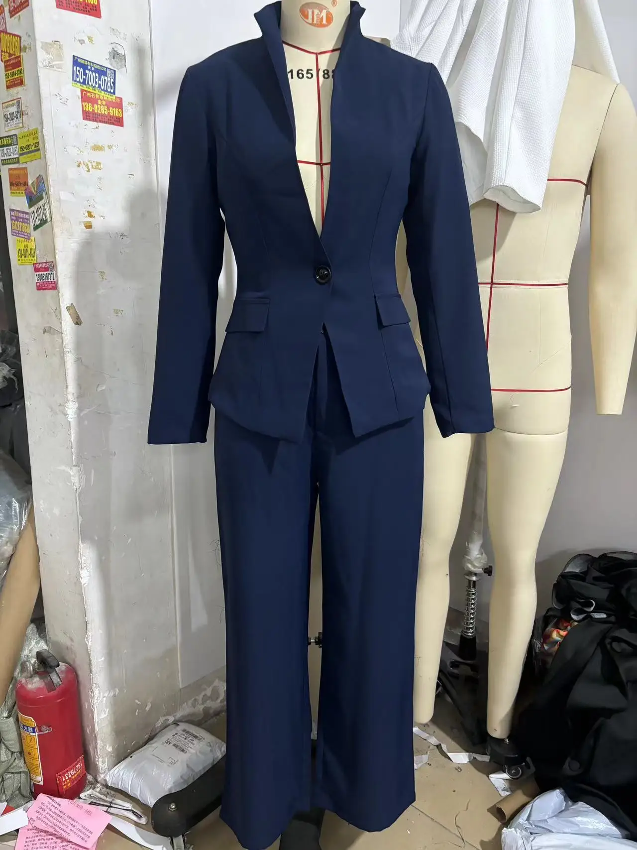 2026 Spring Autumn Single Button Fashion Sets Solid Patchwork High Waist Ladies Outfit Women Formal Cardigan Blazer Pants Suit